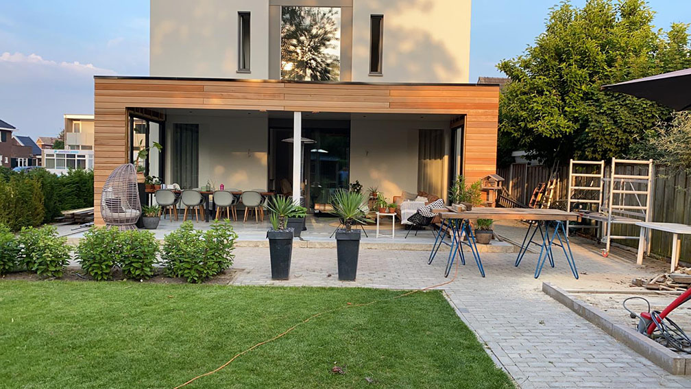 Een veelzijdig project waarin materiaalkeuze en maatwerk samenkomen voor een stijlvolle en functionele buitenruimte.